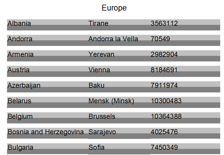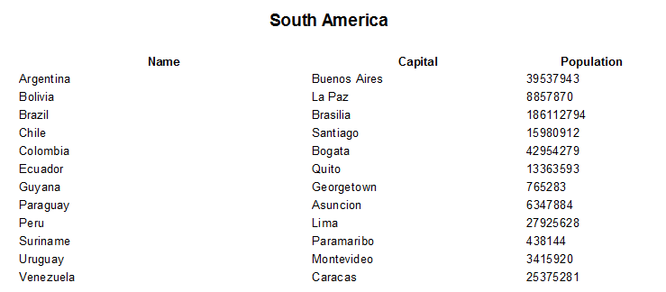 Выбираем South America. И получаем детализирующий отчет с информацией о количестве населения по странам: