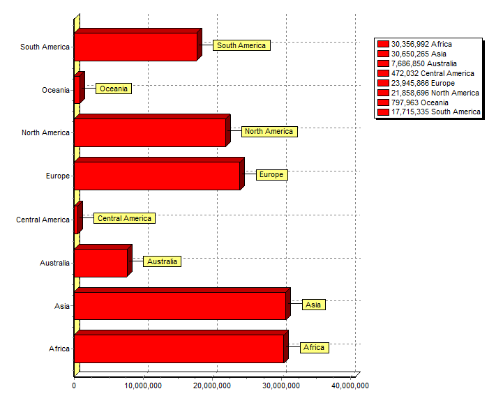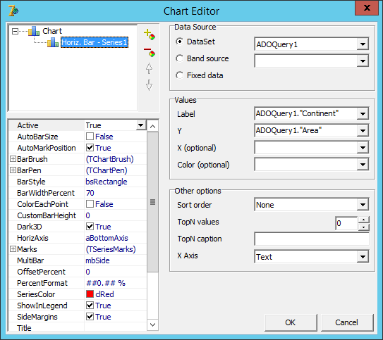 Задаем источник данных. По оси Y выводим поле Area. В качестве заголовка (Label) используем поле Continent.