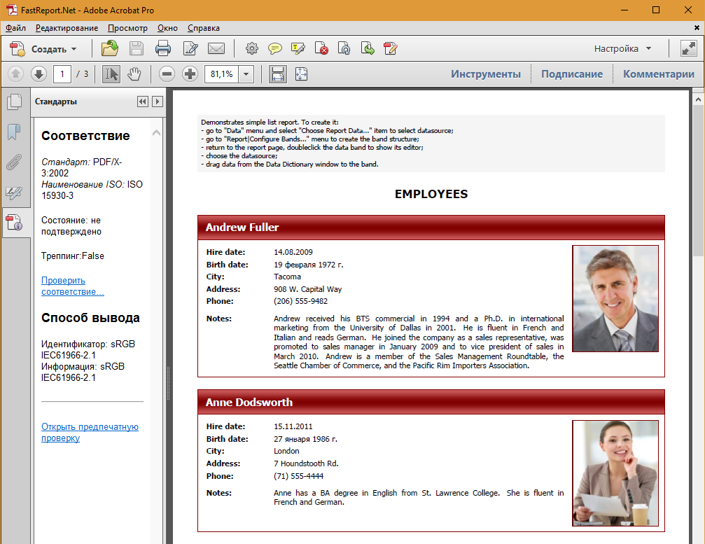 В FastReport.Net поддерживается экспорт в формат PDF/X-3. Поэтому, в дальнейшем, будем рассматривать его особенности.
