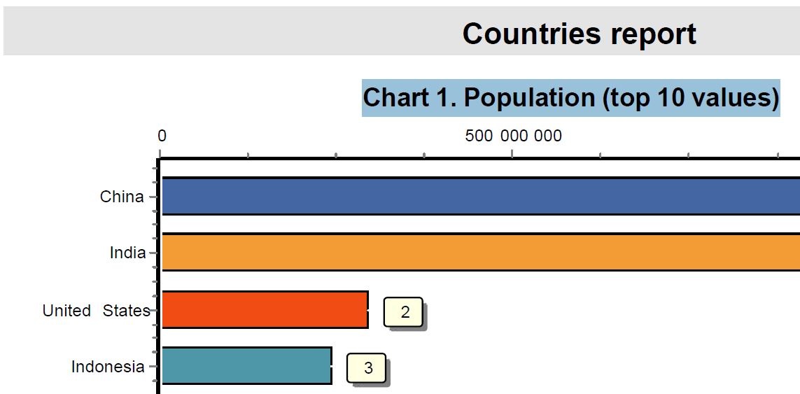 Обратите внимание, что на предыдущем скриншоте я показал выделенный заголовок диаграммы. Любой текст в диаграмме, карте или RichText теперь можно выделить и скопировать в буфер обмена.